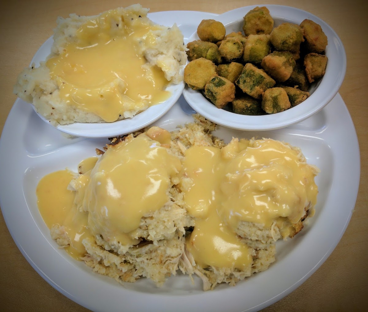 I went by for lunch. They get a busy lunch crowd. Breakfast is available all day. I had the special for Tuesday, chicken and dressing. It came with 2 sides and your choice of cornbread or a roll. The food was fresh and good. Staff is super friendly and inviting. I got 3 chocolate muffins to go afterward. The muffin was fresh and the most soft, moist, and fluffy muffin I've ever eaten in my 39 years of life! Those are competition worthy muffins.